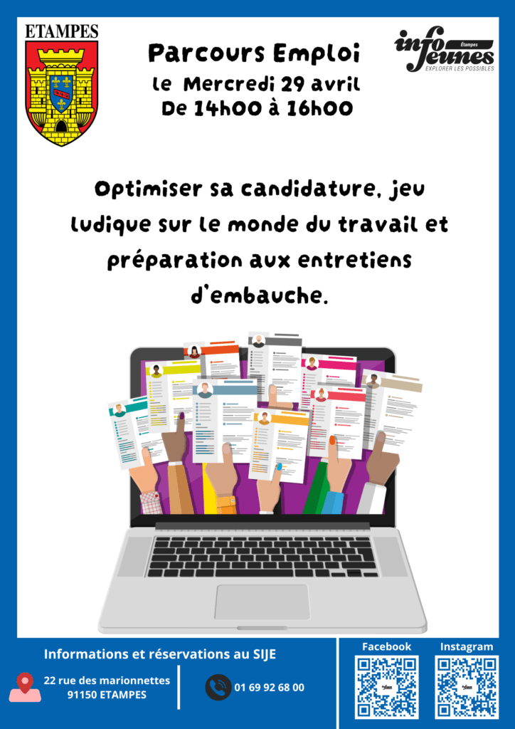 Un atelier CV, lettre de motivation et préparation aux entretiens d’embauche sera proposé le mercredi 29 avril, de 14 h à 16 h.