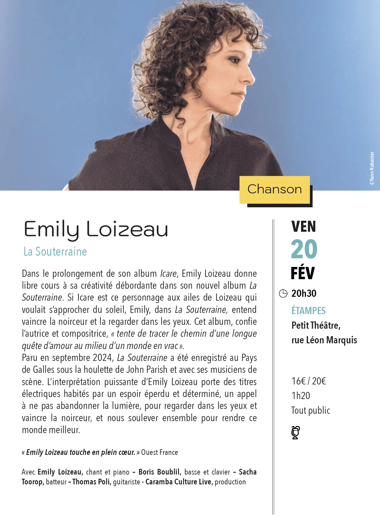 À 20 h 30, au Petit Théâtre d'Étampes, rue Léon-Marquis.