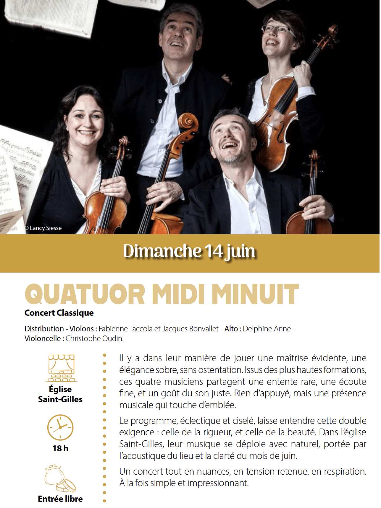 Le 14 juin 2026 À 18 h, à l'église Saint-Gilles Contact : Service Culturelle de la Ville Tél.: 06 73 37 90 58 Aller sur le site