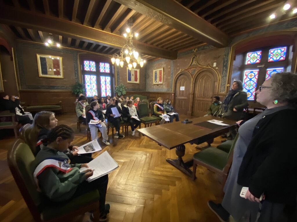 Mercredi 21 janvier, les enfants du Conseil municipal des jeunes (CMJ) ont poussé les portes de l’Hôtel de Ville d’Étampes pour une visite à la fois architecturale et institutionnelle, guidée par Caroline Lambert-Mercier, responsable du service des archives municipales.