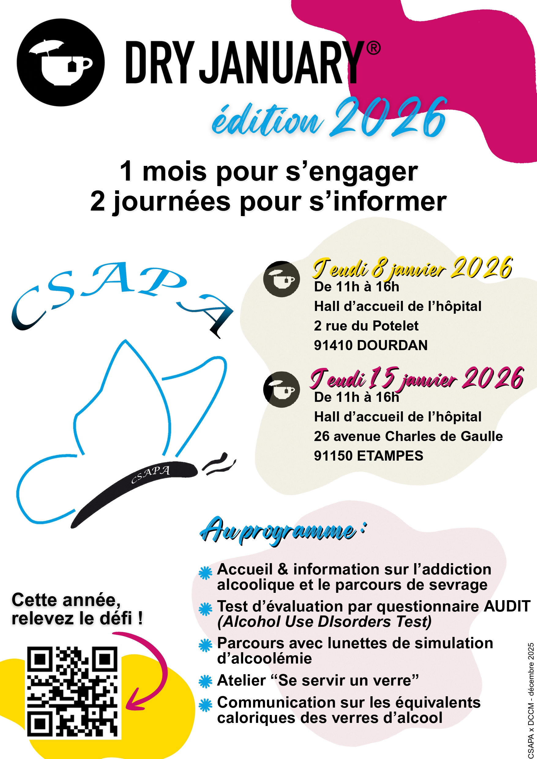 À l’occasion du « Dry January », Le Centre Hospitalier Sud-Essonne, via son Centre de Soins d’Accompagnement et de Prévention en Addictologie (CSAPA), compte rappeler l’importance et l’impact de cette addiction.