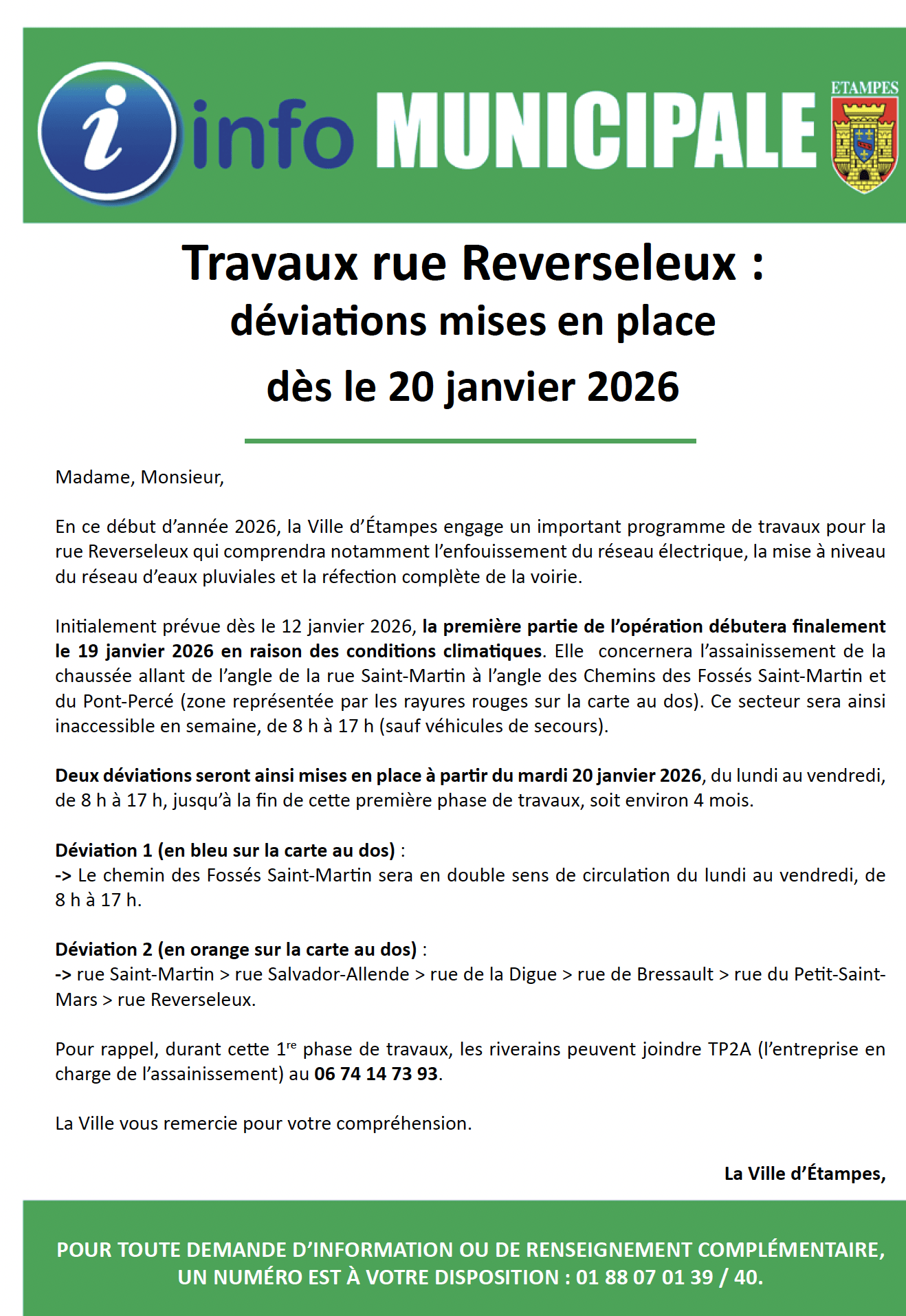 Travaux rue Reverseleux : déviations mises en place dès le 20 janvier 2026